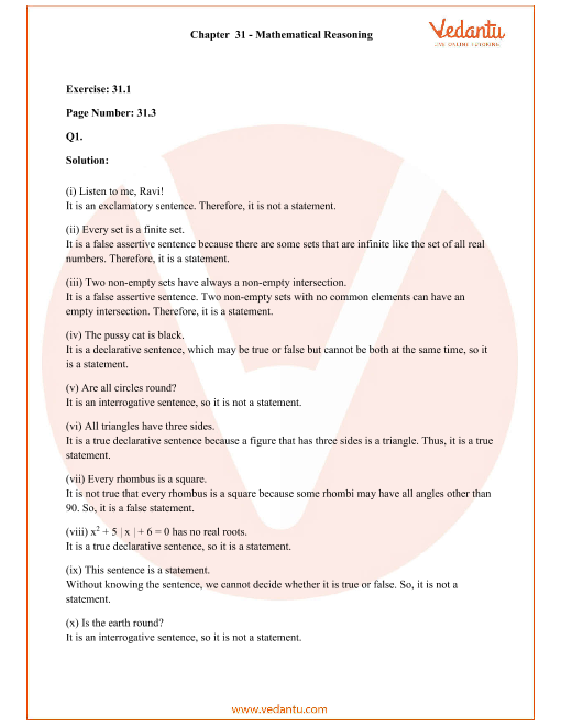 Vedantu's solutions provide a step-by-step methodology for each problem in Exercise 31.1. They help you understand how to first identify if a sentence is a mathematically acceptable statement and then how to apply logical rules, such as negation, to arrive at the correct answer as per the CBSE 2025-26 syllabus.