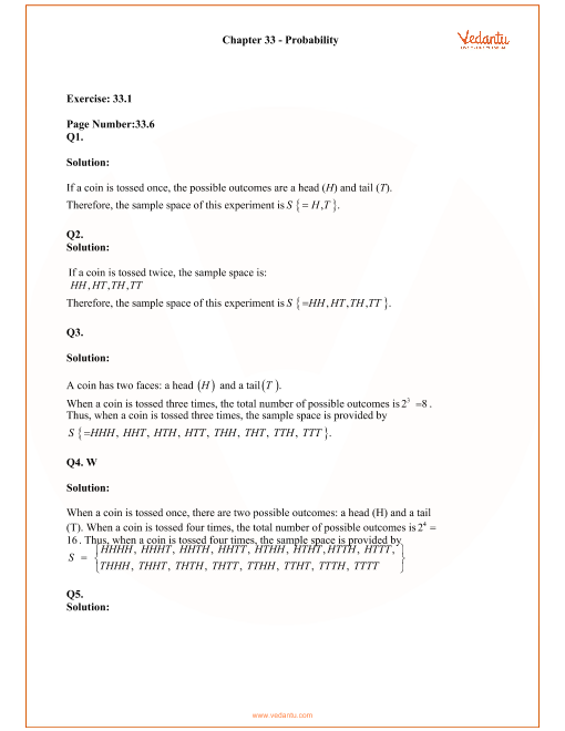 2. Is it possible to obtain Vedantu's RD Sharma Solutions for Class 11 Maths Chapter 33 Probability (Ex 33.1) in a PDF format?