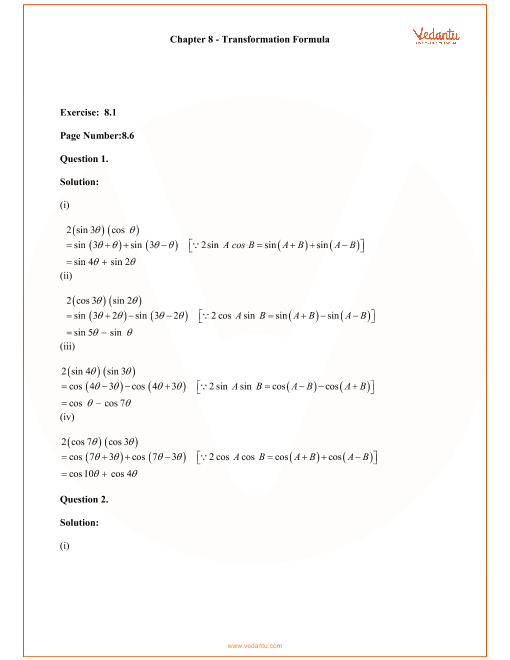 5. Why study from Vedantu’s RD Sharma Class 11 Solutions Chapter 8 - Transformation Formulae (Ex 8.2) Exercise 8.2?
