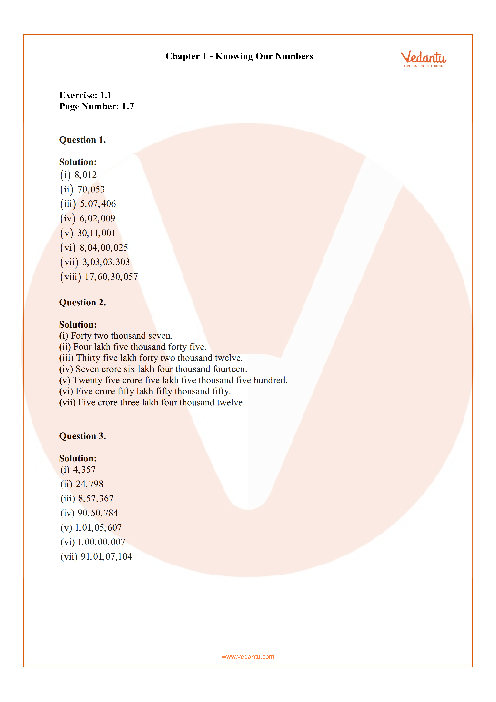 Chapter 1 Knowing Our Numbers is an extremely important Chapter. It forms the basis of mathematics. As numbers revolve around us we should know in what ways we can study them and what all operations can be performed on them. In order to move further in their studies, it is advisable for students to understand this Chapter in-depth. To make Learning easier for students Vedantu.com has curated all the study material on the website. The study material is easily accessible and is available for free.