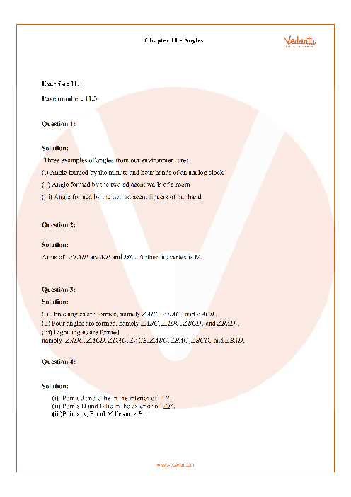 Students can prepare Class 6 Mathematics Chapter 11 – Angles Exercise 11.2 by referring to the solutions available on Vedantu. Students can find solutions to all questions given in the exercise on Vedantu that are solved by expert teachers in a simple language so that students can easily understand all concepts.