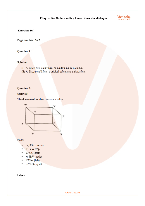 FAQs on RD Sharma Class 6 Solutions Chapter 16 - Understanding Three Dimensional Shapes (Ex 16.1) Exercise 16.1