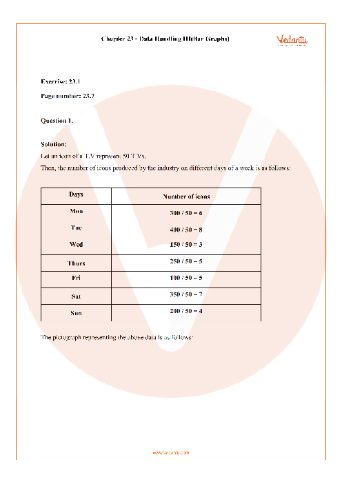 The RD Sharma Class 6 Solutions Chapter 23 – Data Handling III (Ex 23.1) Exercise 23.1 – Free PDF is available on Vedantu’s website and mobile app. To download the PDF format, you have to sign up on Vedantu, which is absolutely free. Once registered, you will be able to download the RD Sharma Class 6 Solutions Chapter 23 – Data Handling III (Ex 23.1) Exercise 23.1 – Free PDF. Moreover, you will also get access to other study materials such as NCERT books, NCERT solutions, reference books, etc. available on our website.