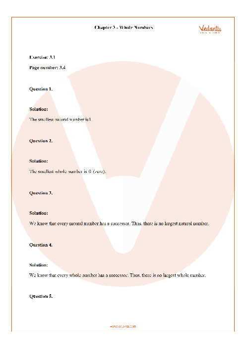 Vedantu’s RD Sharma Class 6 Chapter 3 Whole Numbers (Ex 3.1) Solutions - Free PDF