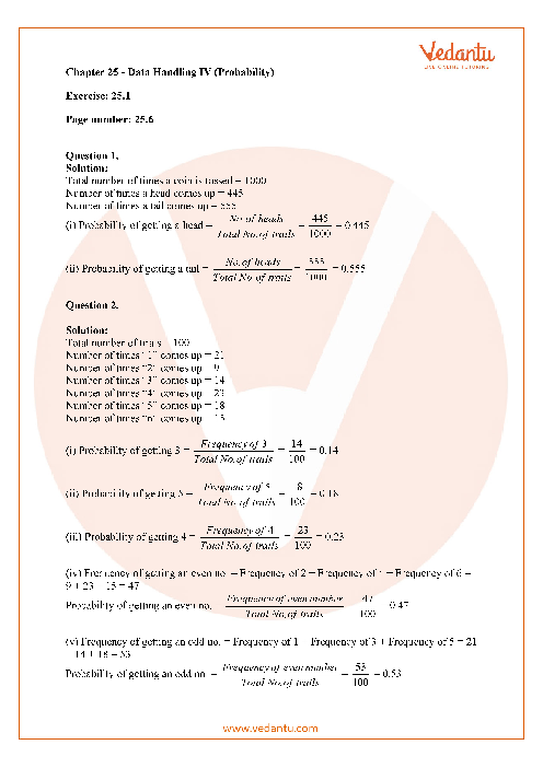 Free PDF Download of RD Sharma Class 7 Solutions Chapter 25 - Data Handling IV (Probability) Exercise 25.1