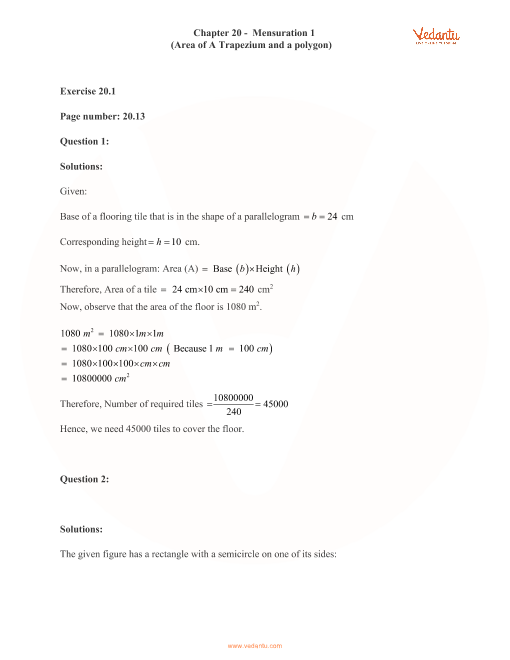 Chapter 20 of the Class 8 CBSE textbook discusses trapeziums, trapezoids, different polygons, and how to measure their area. It discusses what regular and irregular polygons are. Regular polygons are easy and simple figures with similar lengths and angles whereas irregular polygons do not have equal sides and angles. So finding out the measurements of an irregular polygon is difficult compared to regular polygons. Practising as many problems as possible will help students solve the same problems with ease in the exams. For syllabus, previous year questions, and reference materials keep visiting Vedantu.