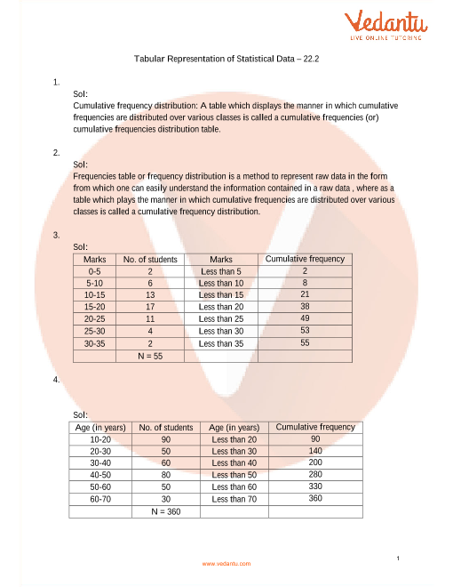 Yes apart from solving the numerical questions asked in Chapter 22 exercise 22.2, the word problems must be also given special care while practising. This allows you to understand how to solve the word problems when they are asked in the exam. RD Sharma Class 9 Solutions Chapter 22 - Tabular Representation of Statistical Data Exercise 22.2 is also a great book to refer to in case you are stuck with a particular topic and its word problems. You can also refer to the Vedantu NCERT Solutions for Class 9 Maths that consists of the important word problems and their solutions in an easy manner.