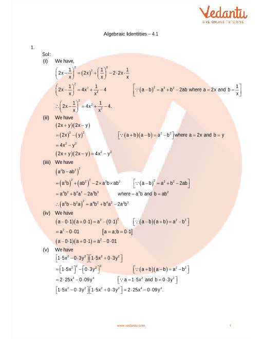 FAQs on RD Sharma Class 9 Solutions Chapter 4 - Algebraic Identities (Ex 4.2) Exercise 4.2