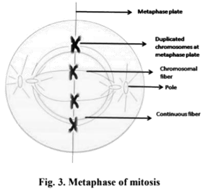 - Metaphase: Chromosomes align at the cell’s equatorial plate.