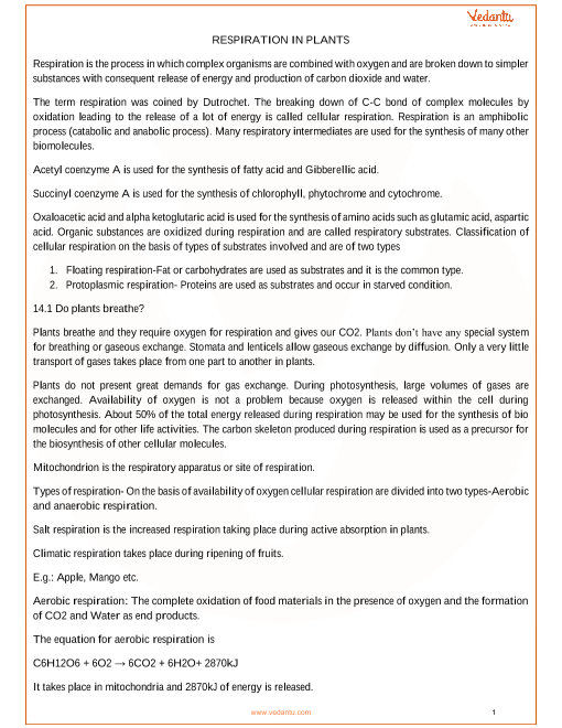 Biology Notes for Chapter 14 Breathing and Exchange of Gases Class 11 - FREE PDF Download