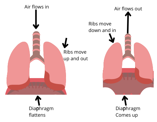 - Expiration (Exhaling): The muscles relax, returning the chest cavity to its original size. This decreases thoracic volume and increases pressure inside the lungs, forcing air out.