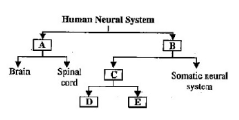 7. The flowchart given here shows functional organization of the human neural system.