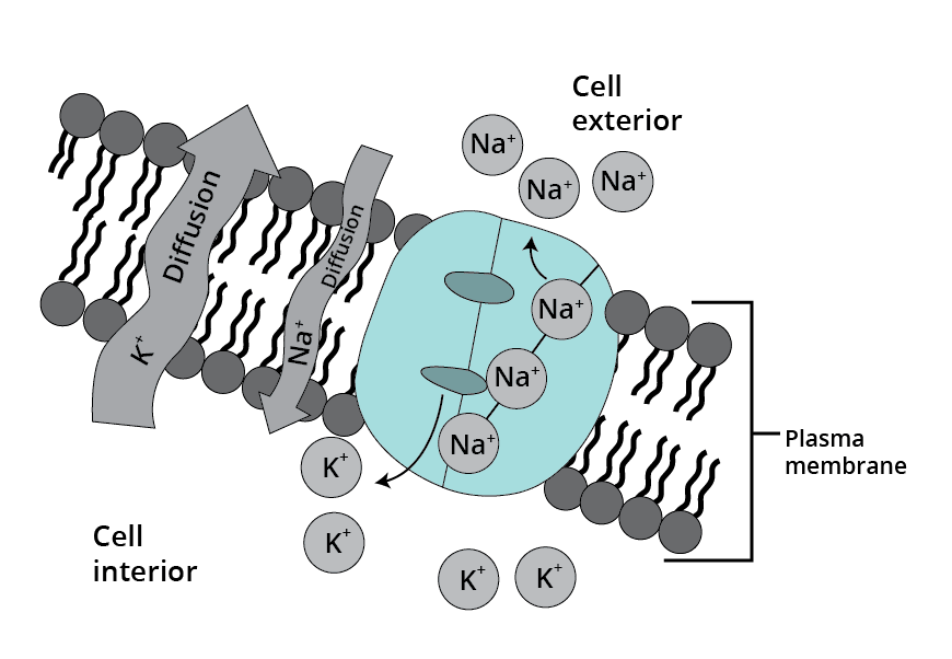 Ans. When the membrane of a nerve cell carries out a sodium pump, it transports 3 Na+ ions outwards and 2 K+ ions into the cell. As a result, the outer surface of the axonal membrane becomes a positively charge while its inner surface is negatively charged. It restores its resting membrane potential.