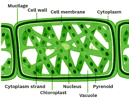 - Chlorophyceae (Green Algae): Major pigments are Chlorophyll a and b. Food is stored as starch. The cell wall is made of cellulose.