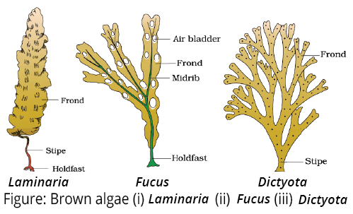 - Phaeophyceae (Brown Algae): Major pigments are Chlorophyll a, c, and fucoxanthin. Food is stored as mannitol and laminarin. The cell wall has cellulose and algin.