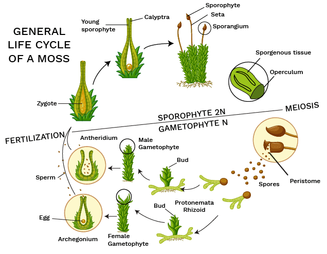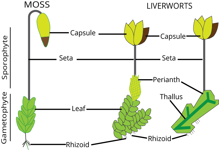 - Bryophytes: Small, non-vascular plants in damp environments, known as 'amphibians of the plant kingdom'. Examples include mosses and liverworts.