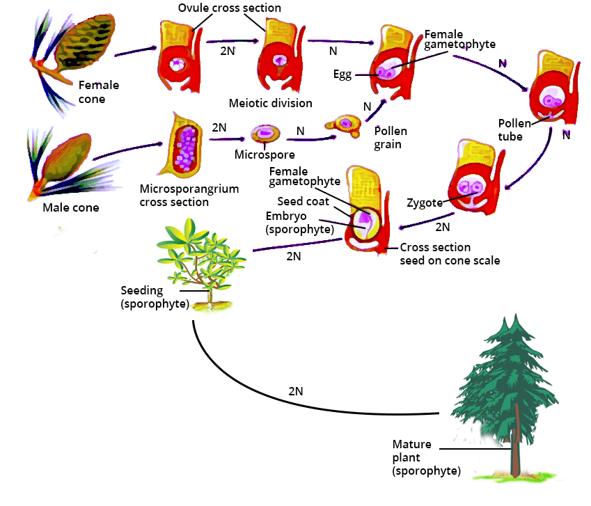 - Gymnosperms: Produce distinct male and female cones (strobili) that bear microspores and megaspores.