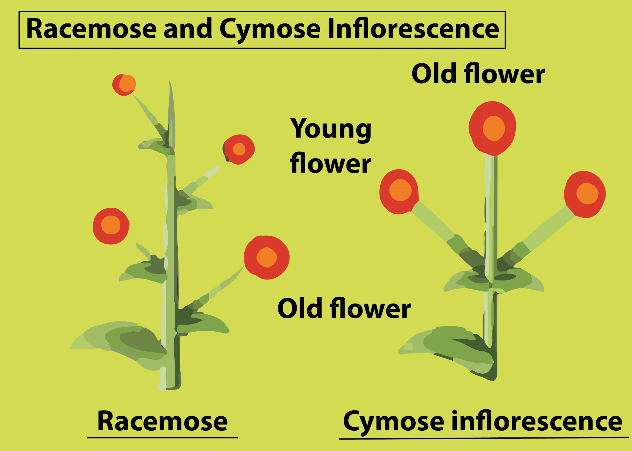 5. What is the key difference between racemose and cymose inflorescence in a concept summary?