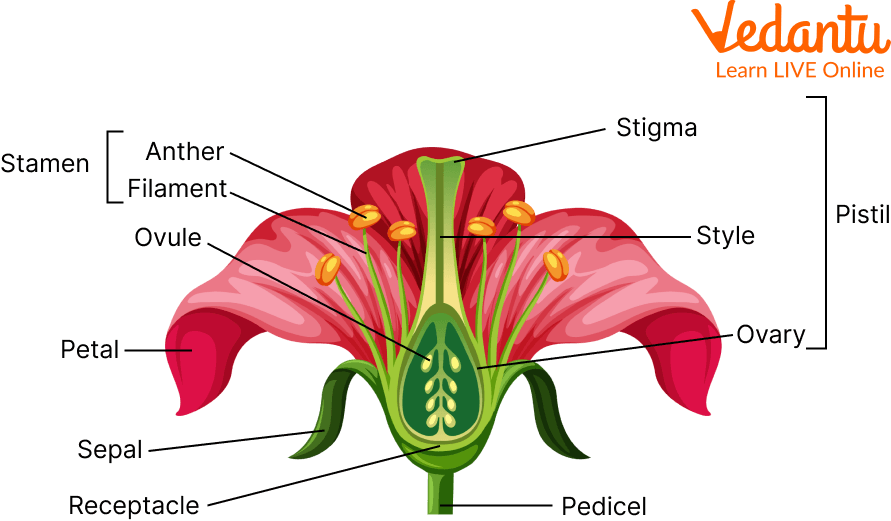 - Corolla: Composed of petals, which are usually brightly coloured to attract pollinators.