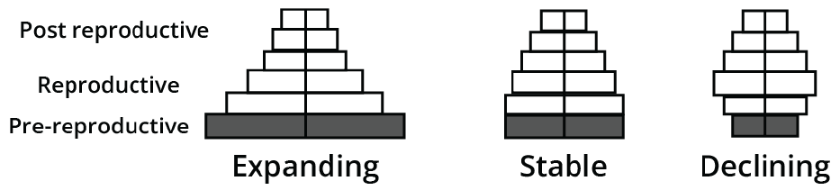 - Age Pyramids: The three types (expanding, stable, and declining) provide a quick summary of a population's status.