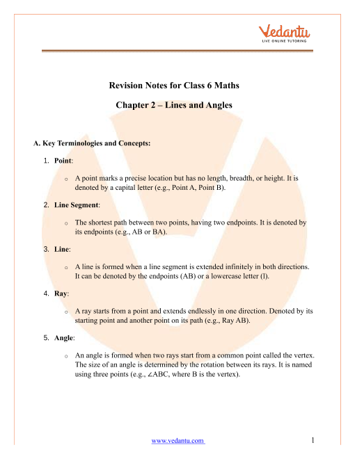 6. What is the recommended revision order for Lines and Angles Class 6 Notes to maximize understanding?