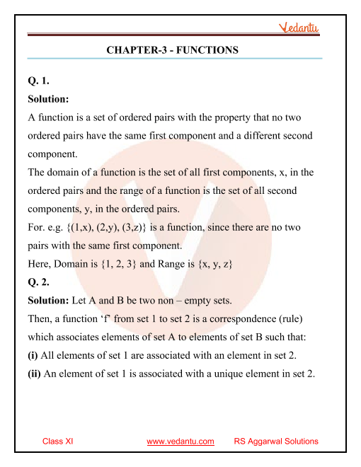 RS Aggarwal Class 11 solutions- Functions on Vedantu is a really popular one for this chapter. It has so many questions to practice from that the students will not want to practice from any other book. It has all the important questions that one needs to know and so, Vedantu provides it for free to students keeping its advantages in mind.