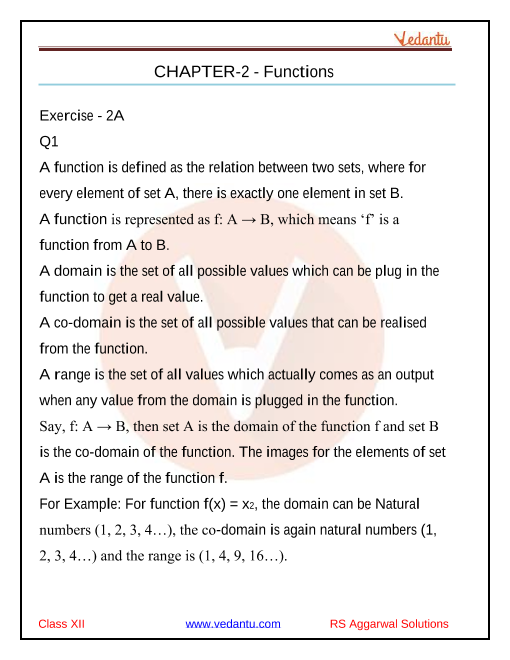 Class 12 RS Aggarwal Chapter-2 Functions Solutions - Free PDF Download