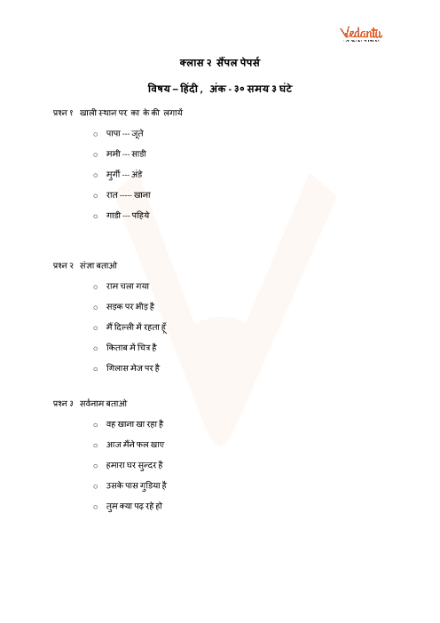 CBSE Class 2 Hindi Sample Papers - Mock Paper 1 (2025-26)