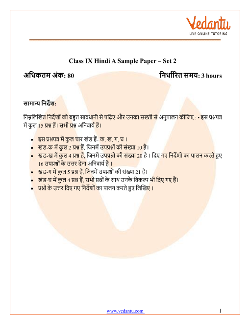 1. What is CBSE Class 9 Hindi A Sample Paper Set 2?