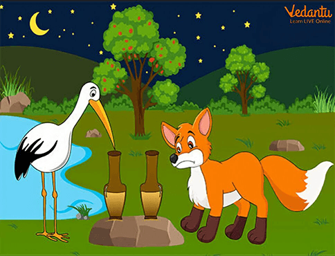 Finally, the day came and the fox went to the stork’s house. After exchanging a few pleasantries, the stork served dinner for both of them. She too had soup, but it was served in a very narrow jar with a long neck. The fox couldn’t even reach inside the jar while the stork had the soup very easily. After finishing the soup, the stork asked the fox if he liked the soup or not. Remembering what he had done to the stork earlier, the fox finally learned that he was outsmarted by the stork.