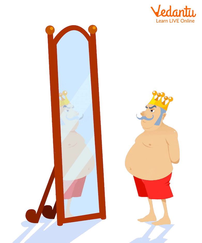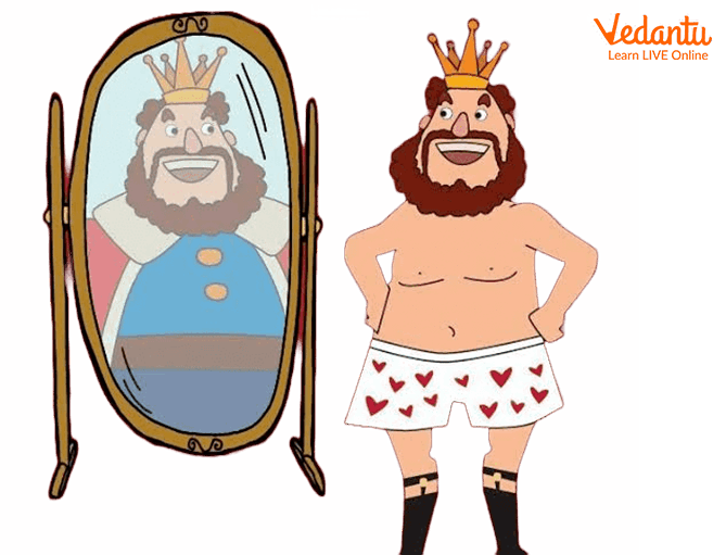 Soon, it was time for the Emperor to get dressed in the new clothes; the cheats said, “These clothes are so lightweight and airy, it feels like you are wearing nothing at all.” The Emperor also thought it appeared precisely that way! Because when he looked in the mirror, he saw that he was wearing nothing. However, instead, he thought that he must be wearing something exquisite.