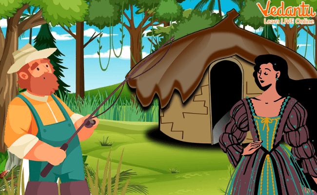 A poor fisherman used to live near the sea with his wife in a hovel. He went fishing every day. One day, a great flounder was stuck in his line. The flounder requested him not to kill him. The flounder said, “I am an enchanted prince and put me back into the water.” The fisherman said, “I won’t kill a flounder that can talk”. He set free the founder and it swam down to the sea.