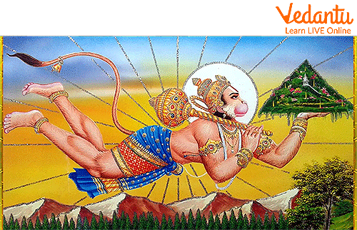 In the Sanjeevani Booti Mountain Story, Hanuman wanted to cover a huge distance to bring medicinal herbs. Everyone thought it was impossible to go that far.