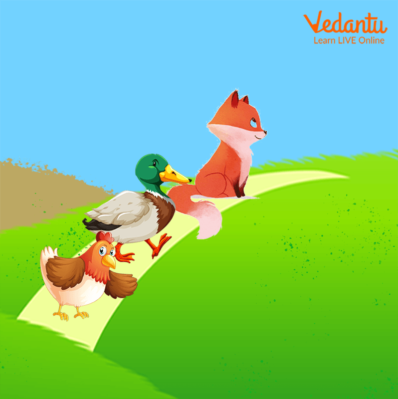 Henny-penny, Cocky-locky, and Ducky-daddles going along
