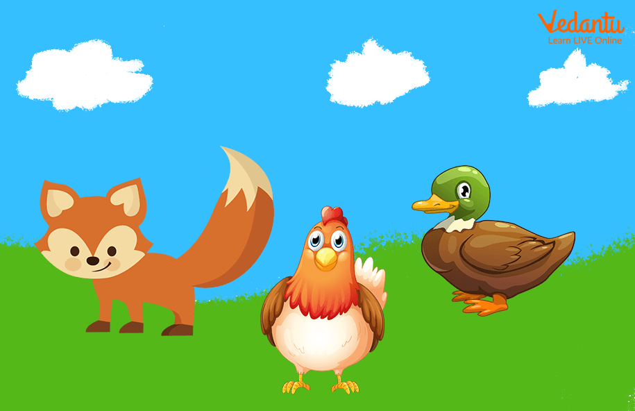 And Henny-penny, Cocky-locky, Ducky-daddles, Goosey-poosey, and Turkey-lurkey said to Foxy-woxy, "We're going to tell the King the sky's a-falling." "Oh! but this is not the way to the King, Henny-penny, Cocky-locky, Ducky-daddles, Goosey-poosey, and Turkey-lurkey," says Foxy-woxy; "I know the proper way; shall I show it you?"