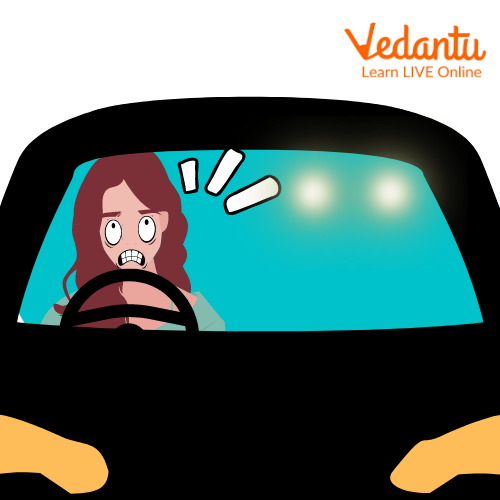 A Woman Screaming at a Car Reflecting the High Beam