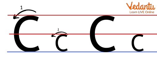 Letter C is the third letter in the English alphabet. In order to write the letter C in Capital letters or small letters, you have to make curves. A bigger curve for the Capital letter C and a smaller curve for the small letter c.
