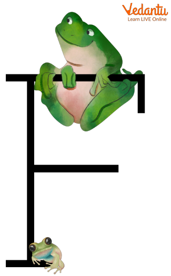 A story about the letter F is given here. The uppercase letter is written as ‘F’. The lowercase of this letter is written as ‘f’. Frog is an example of a word that starts with the letter F. So, here's our story. Mr. Franklin was a frog who wore a nice hat with a feather in it. He noticed a fly and began chasing it. "Oh, Mr. Franklin, I want to be your friend," he added. I'll try my best to make you laugh!"