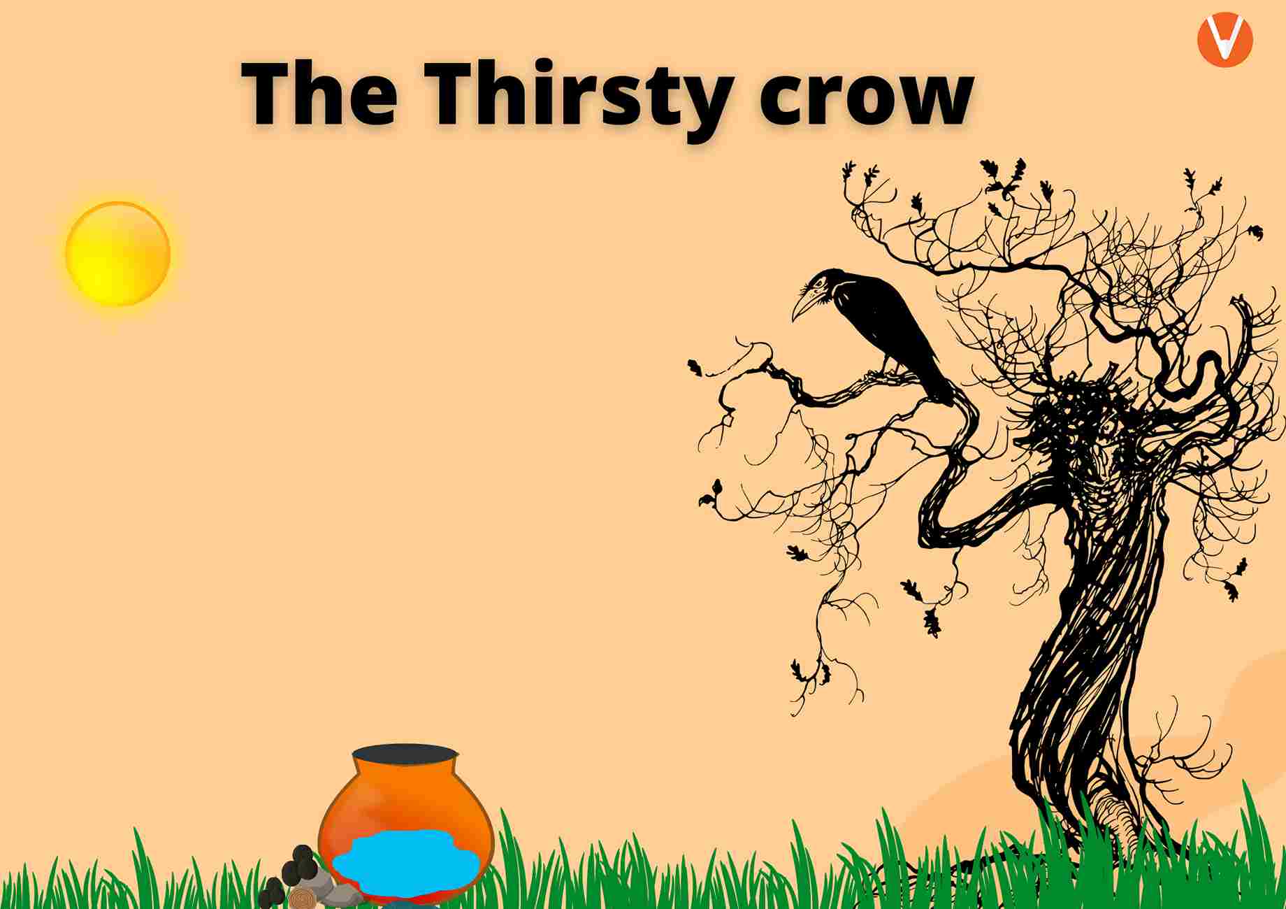 It was one of those hot summer days. A thirsty crow was flying from place to place in search of water. However, despite roaming in various places, he was unable to find water.