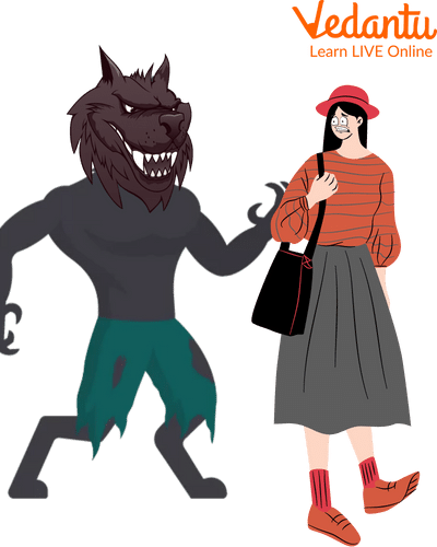 A wolf approached Little Red-Cap as she moved into the woods. She was not terrified of him since she was unaware of what an evil animal he was.