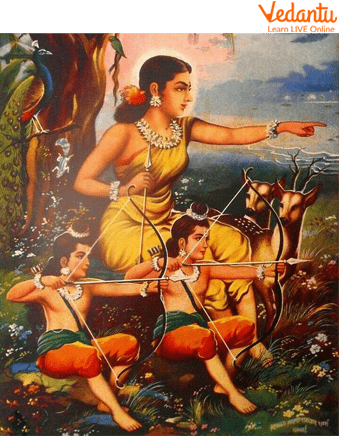 Sita gave birth to twin sons, Lav and Kush, at the ashram. They were educated and trained in military skills under the tutelage of Valmiki, and also learned the story of Rama.