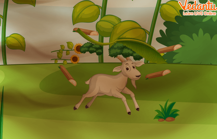 Miss Goat was an intelligent goat who lived in a forest close to a village. On a beautiful sunny morning, she went to the fields for grazing. After some time, she started feeling hot. She looked up at the Sun and it was bright and blazing. She thought, “It is so hot! I need to take shelter from this heat before I collapse.” She walked towards the lake and drank some water from it. Then she had an idea! She bit off a lotus leaf from the lake and held it above her head. “This will act as an umbrella and help me stay cool”, Miss Goat thought.