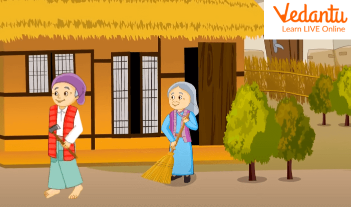 Once upon a time, there lived an old man with his wife in a village, in Japan. The old couple had a small farm where they cultivated rice. In the morning, the old man used to go up the mountains to cut grass. While he went to the mountains, his wife was busy with the daily household chores and worked in their small field. It was just the two of them as they did not have any children.