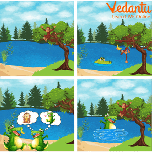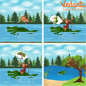 This is a kids’ favourite story of two best friends a crocodile and a monkey. The story centres on a crocodile who lived in the river and a monkey that resided on a tree along the edge of the river. Monkey befriended that crocodile. So, the crocodile, who was the monkey's friend, too took part in the tree's fruits. The crocodile also grabbed a portion of the food for his wife. He had a greedy wife, though, who was more interested in the sweetness of the monkey's heart than the fruit's. The crocodile followed her advice and agreed to take the monkey home. He chose to tell him the truth instead of betraying his friend, though. The monkey thus stopped his connection with the crocodile while saving himself with a cunning justification. This demonstrates how both the tasty fruits and the crocodile's pal were lost.