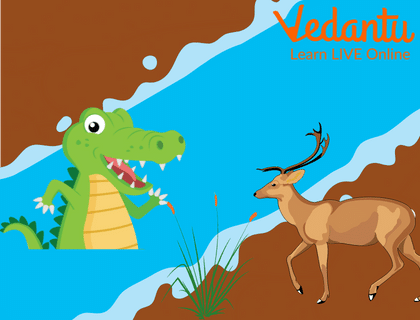 There was a small river flowing across a deep jungle. A handsome deer lived in the jungle. He drank water from the river and grazed in the jungle. The river was the home of a giant crocodile and his friends. He wanted to hunt the deer and eat him but could not find a way.