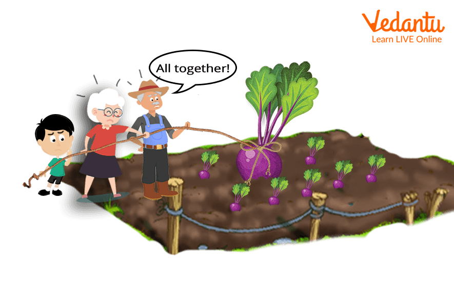 This turnip story educates children about the importance of teamwork and unity, as all the characters in the story were together responsible for finally pulling out the turnip.