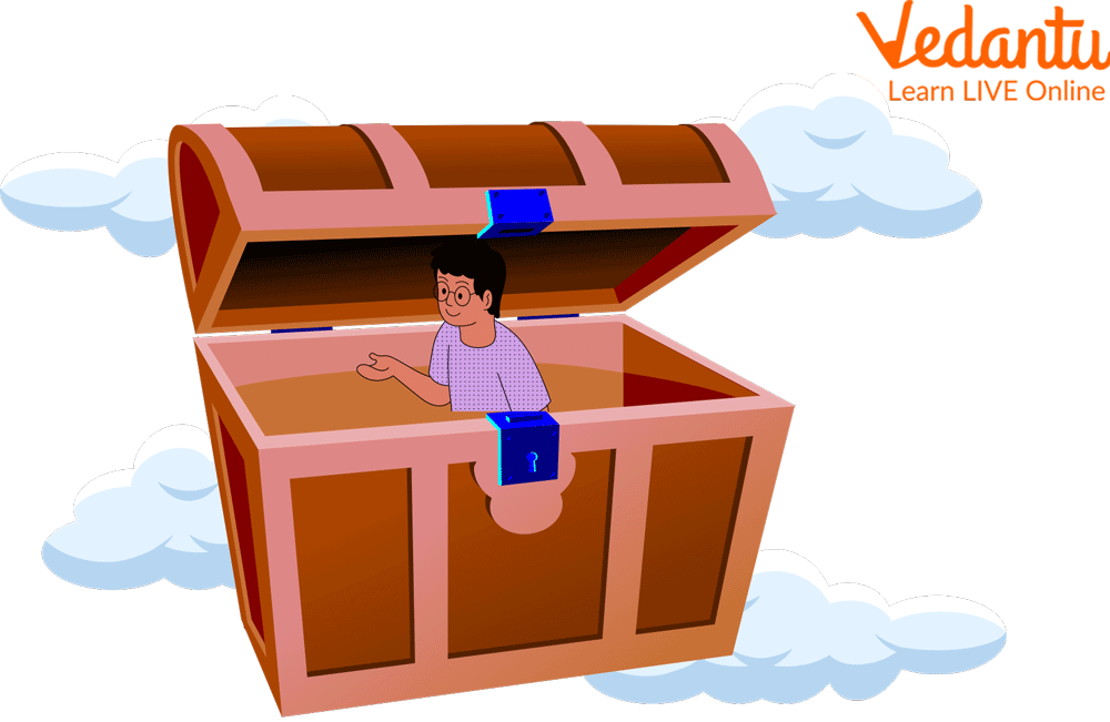With the money, all his friends also went away in no time. None of his friends came to meet him. At last, he was left with just a single set of clothes and 1 dirham. Out of pity, one of his friends sent him a wooden trunk. This was not any ordinary trunk, though! It was a magical trunk that could fly.