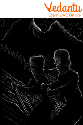 Hibbert’s Algernon half-dream was broken when he woke up in the morning with a twisted ankle, recovering from the shock in his warm bed, accompanied by a doctor. His exploits earned him the nickname "Mad Hibbert" among English tourists and a horror story among the villagers. A group of daring skiers followed his tracks as far as they could - Hibbert skied higher up the mountain than anyone had ever managed - and photographed the scenery. When Hibbert looked at the photos, he noticed something he kept to himself. There was only one ski track in the snow.