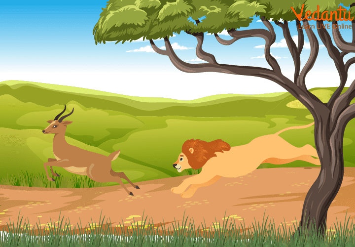 Immediately, he let that hare go; the hare was extremely relieved and thanked God for this great escape. The lion then started to run to catch the big and looking delicious deer. After sensing the lion's presence, the deer began fleeing in seconds. She ( the deer) ran extremely fast through the jungle and vanished into the deep jungle.