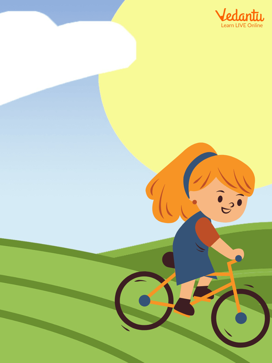 The Little Girl Riding Her Bike Across the Valley